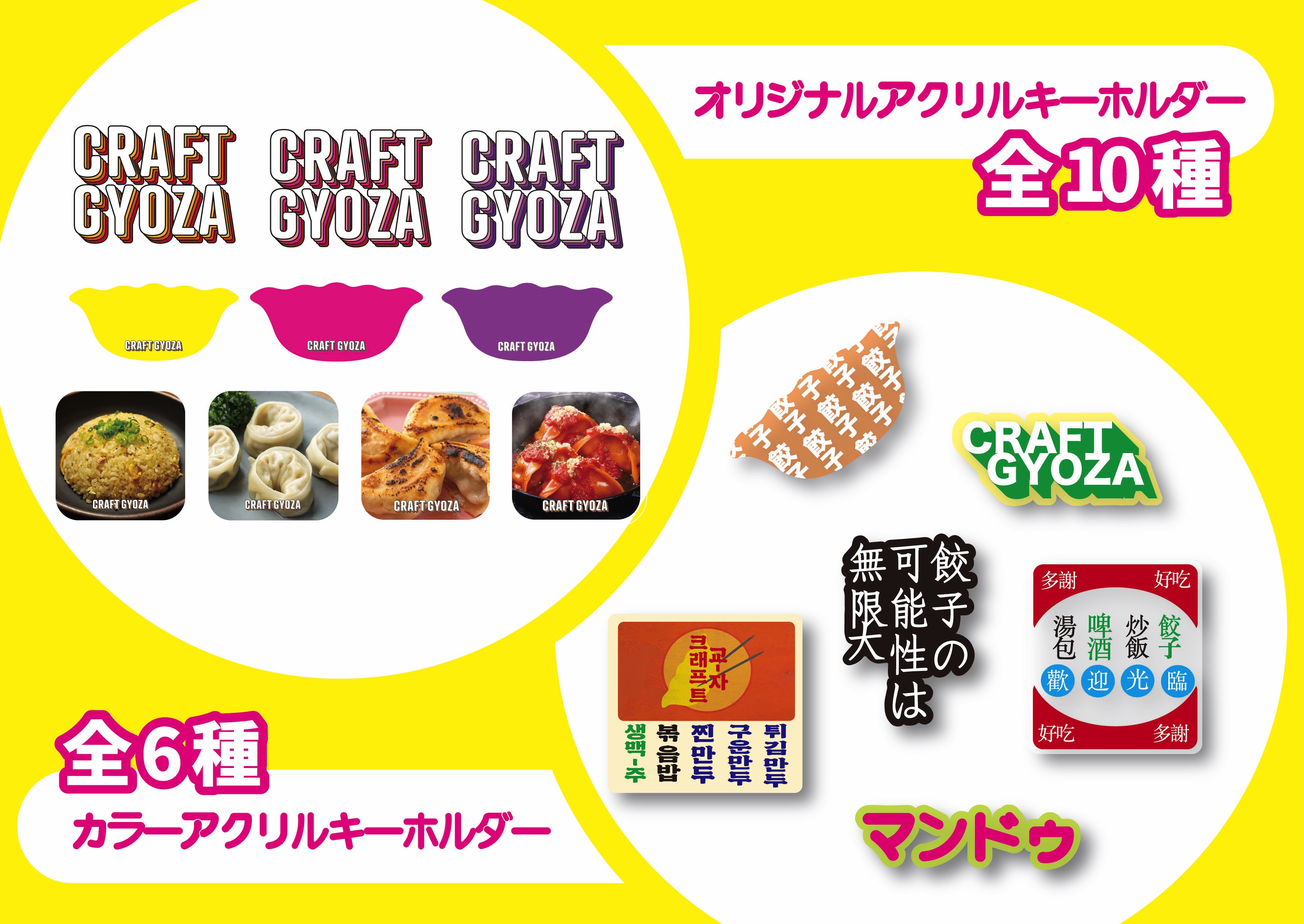“餃子愛”をカタチにしたカプセルトイコーナーが登場!アクリルキーホルダーは、ラメやロゴ、料理名をさまざまな言語でプリントした遊び心あふれるデザイン。思わず何度も回したくなる可愛さ!イベント来場の思い出に、誰かと訪れた記念に、そして餃子愛を語るシンボルとしてぜひカプセルトイを回してみてください!